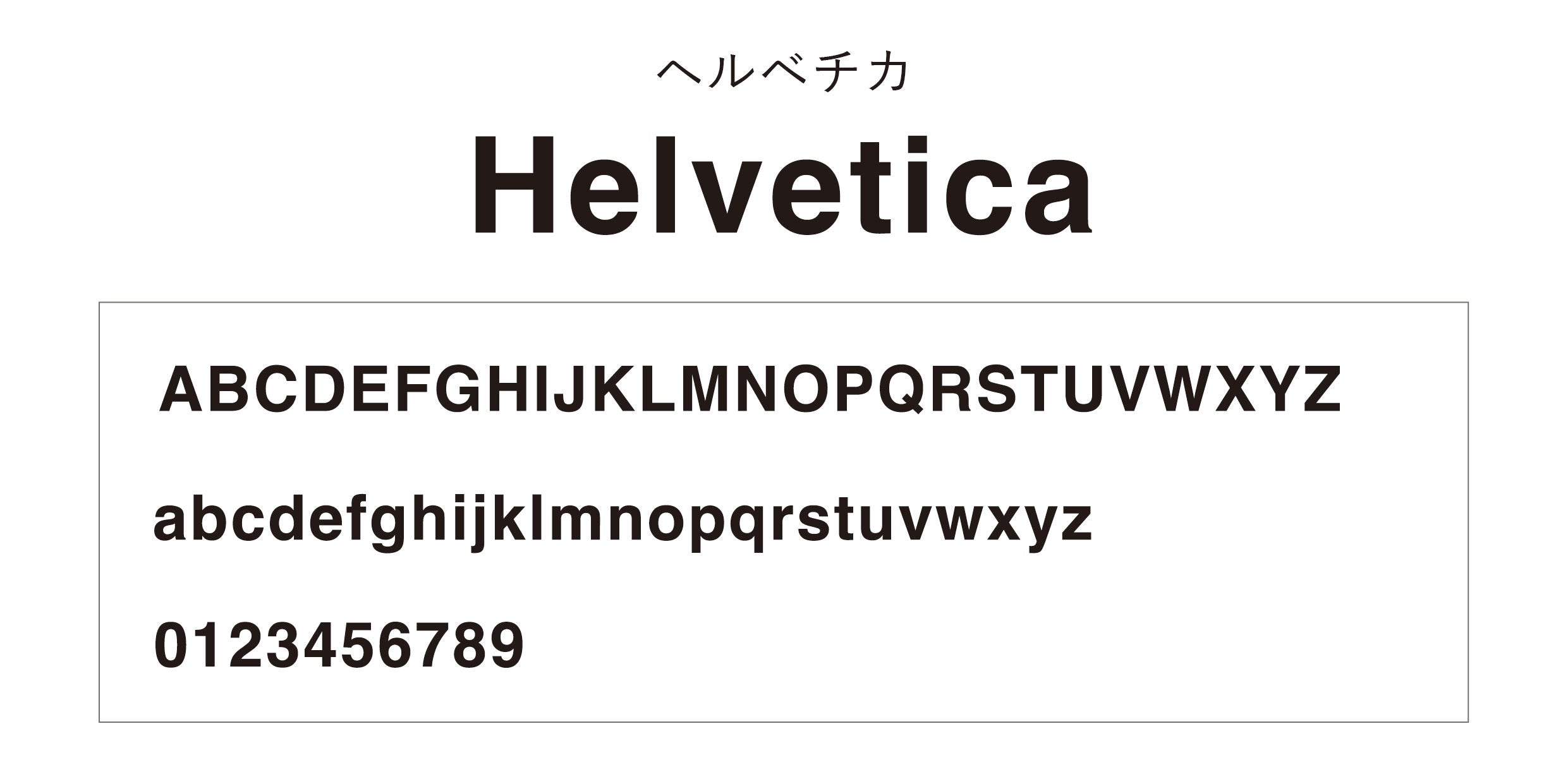 欧文書体の定番で、世界でもっとも使われている書体のひとつです。読みやすく癖がないグローバルな書体です。 世界中の空港や企業、もちろん日本でもヘルベチカをベースにしたロゴタイプが数多くあります