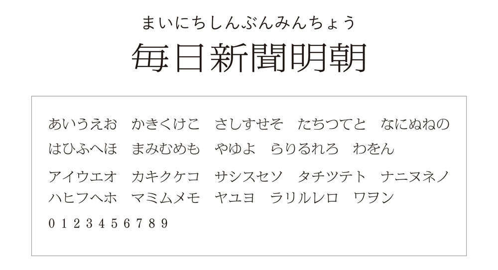 毎日新聞社が新聞本文組用に開発した書体です。親しみやすく、知的な印象を与えます。